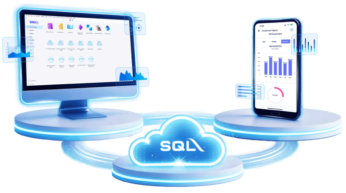 Total flexibility with business workflow customizations, go online instantly with SQL Cloud and stay in control on the move with the Mobile Sales App.