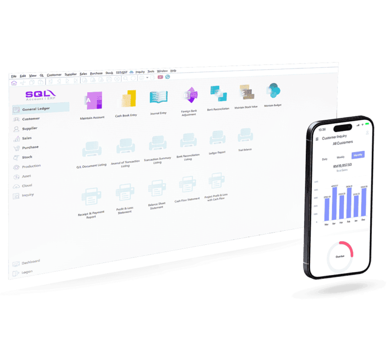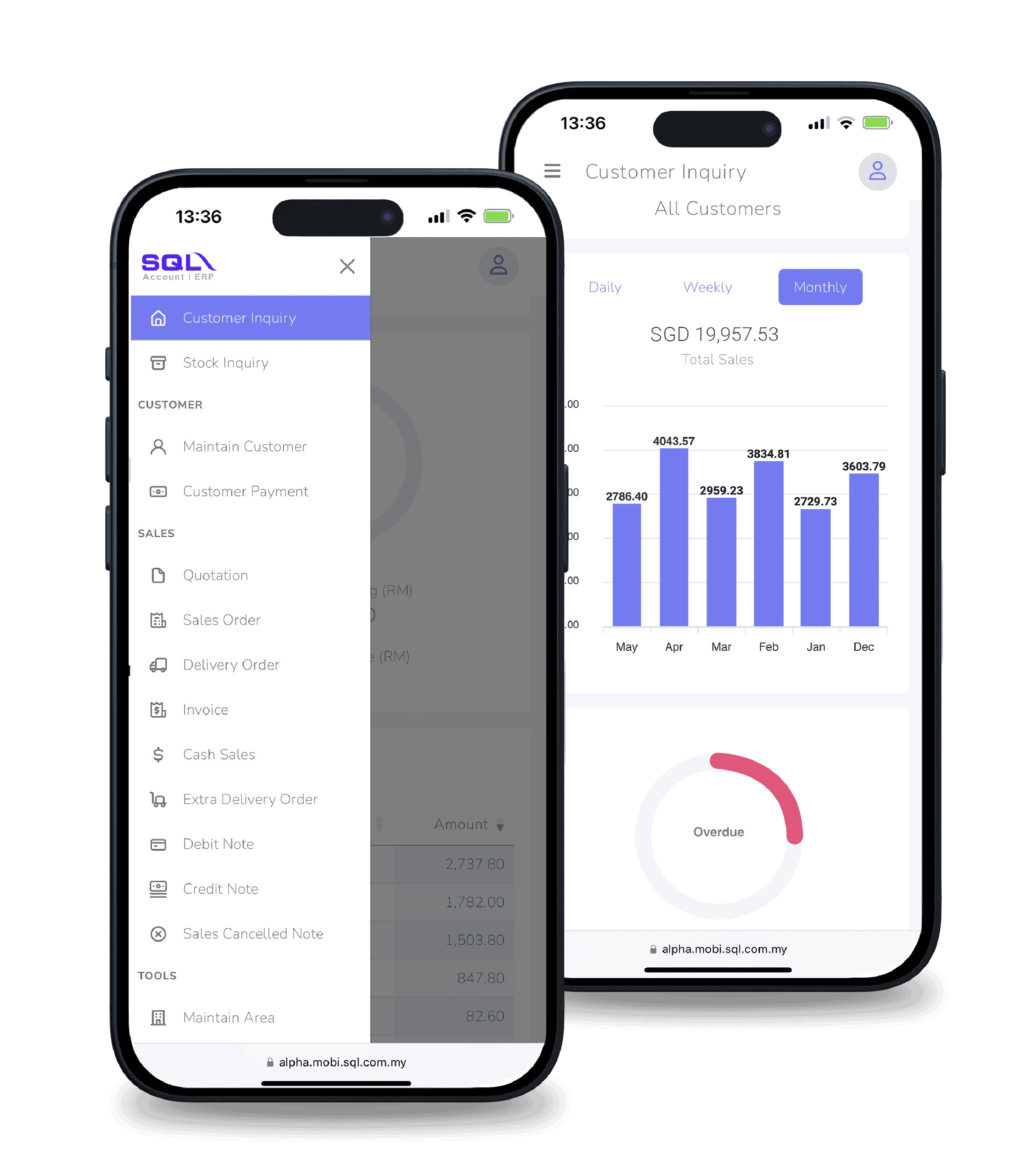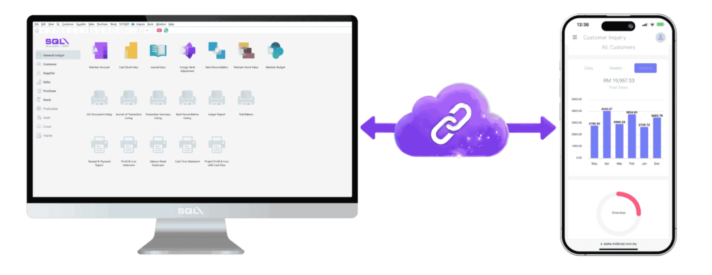 Operates using live data from SQL Account, ensuring consistent and up-to-date information across sales and accounting.